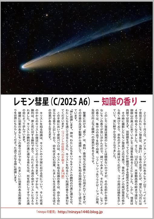 テーマの「香り」について考えていた時、レモン彗星が現れてくれましたので、